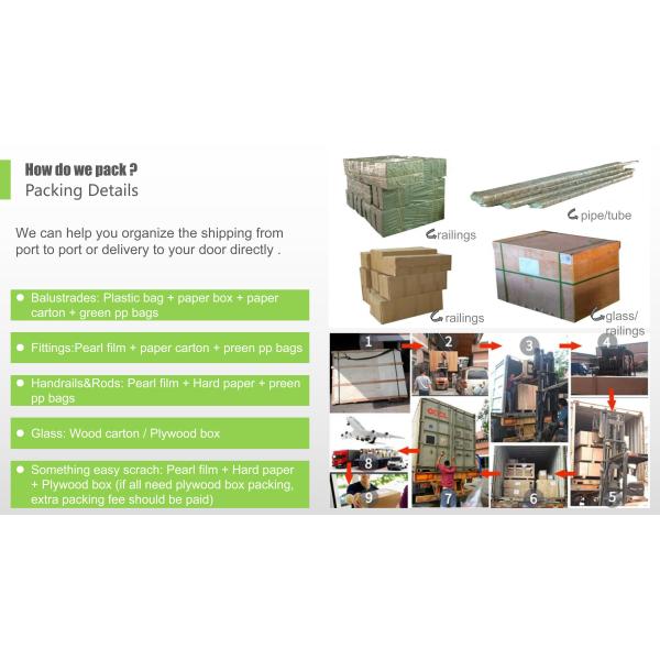 Balustrade | 12mm glass railing/ stainless steel, 10/12mm glass railings/ stainless steel railing/ customized | tempered or laminated glass;A3 steel; SS304/316 | Clear, satin or mirror |